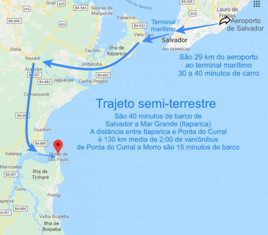 a Mar Grande na Ilha de Itaparica, de lá segue em van ou